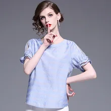 It's better for you to have this Fashion women's dress temperament age reduction dew shoulder lotus leaf sleeve striped bow 2020 summer new women's chiffon top.