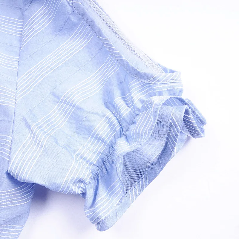 Fashion women's dress temperament age reduction dew shoulder lotus leaf sleeve striped bow 2020 summer new women's chiffon top