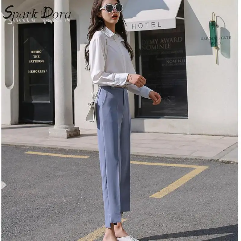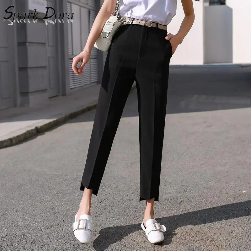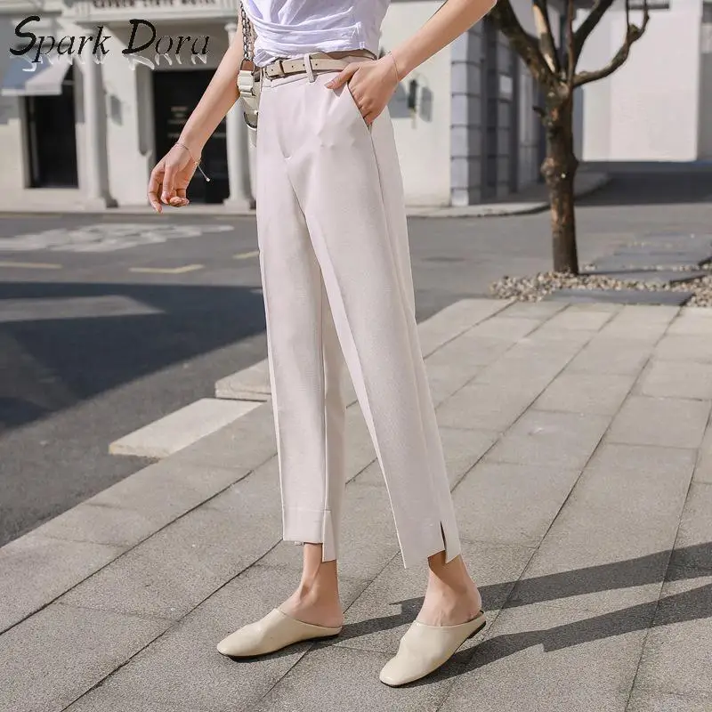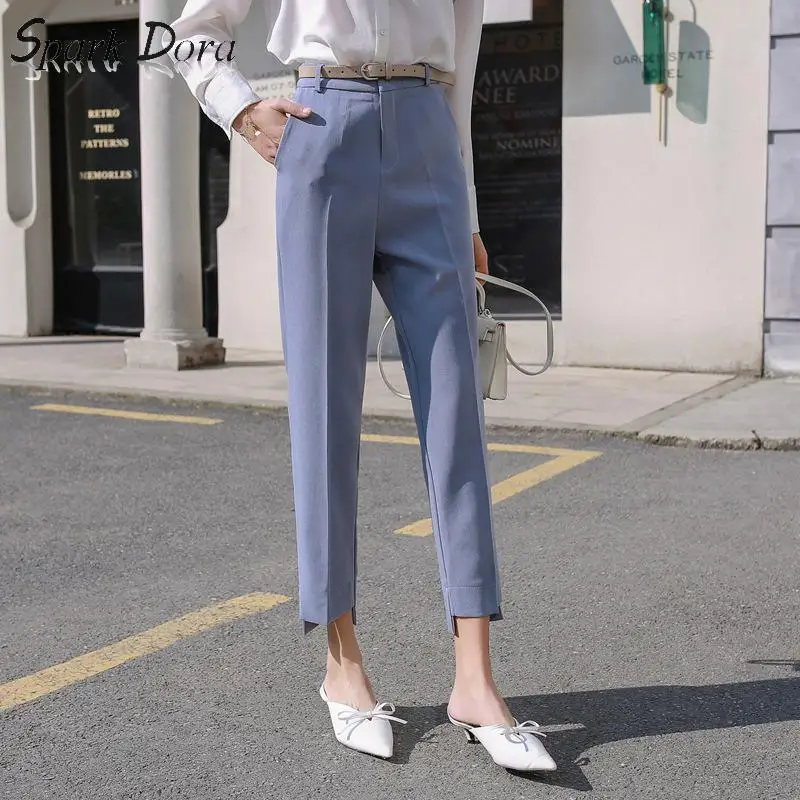 SparkDora Spring And Summer 2020 Western Pants Women's Small Leg Asymmetrical Trousers With Belt S-XL