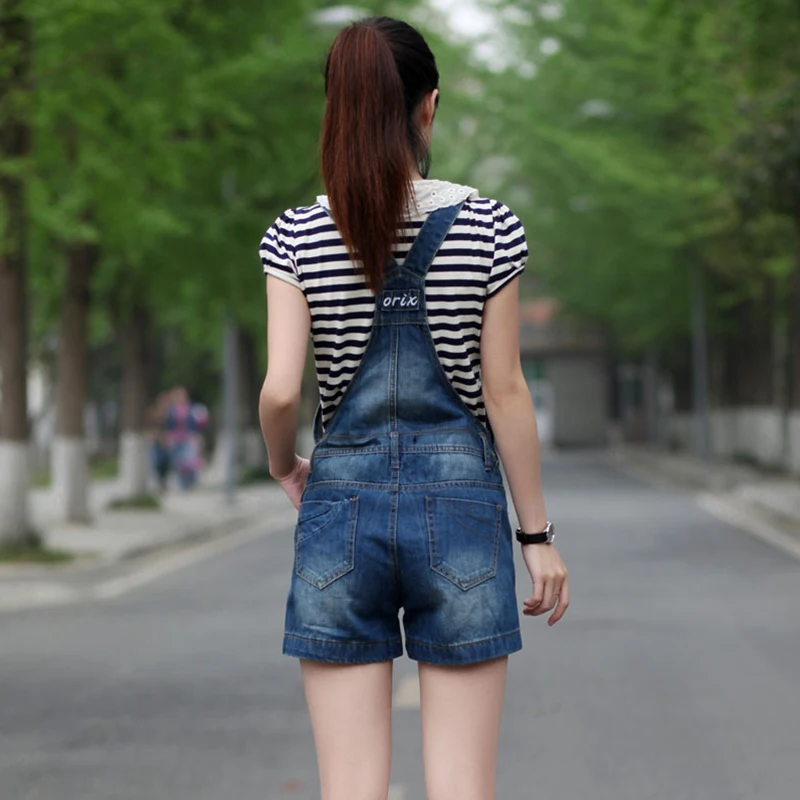 2014 summer denim bib pants female loose plus size denim jumpsuit short trousers thin