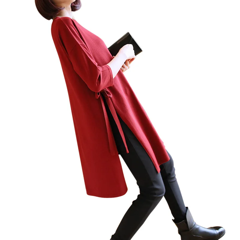 Medium and long loose Pullover Sweater new women's Korean version wear tie and bottom knit women sweater