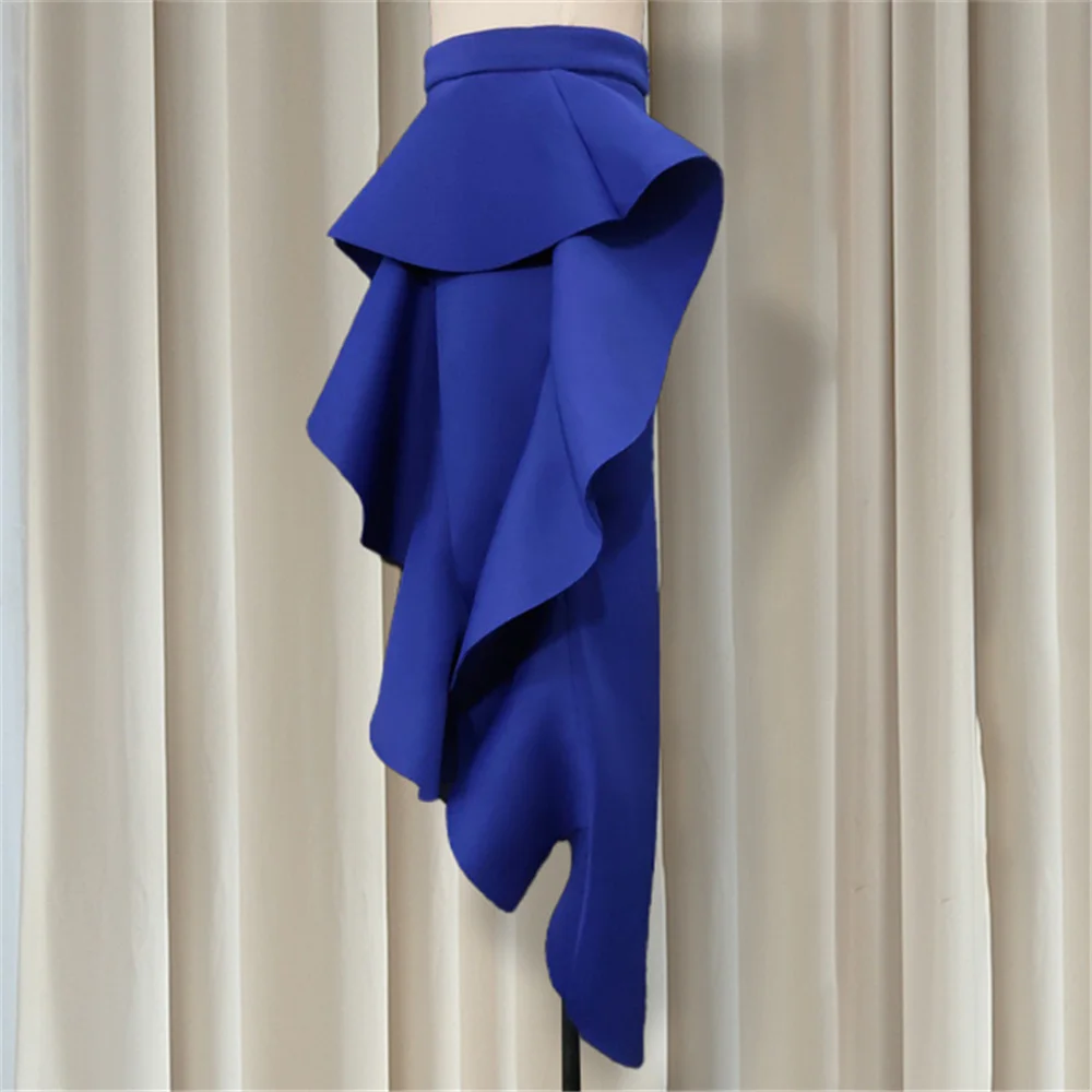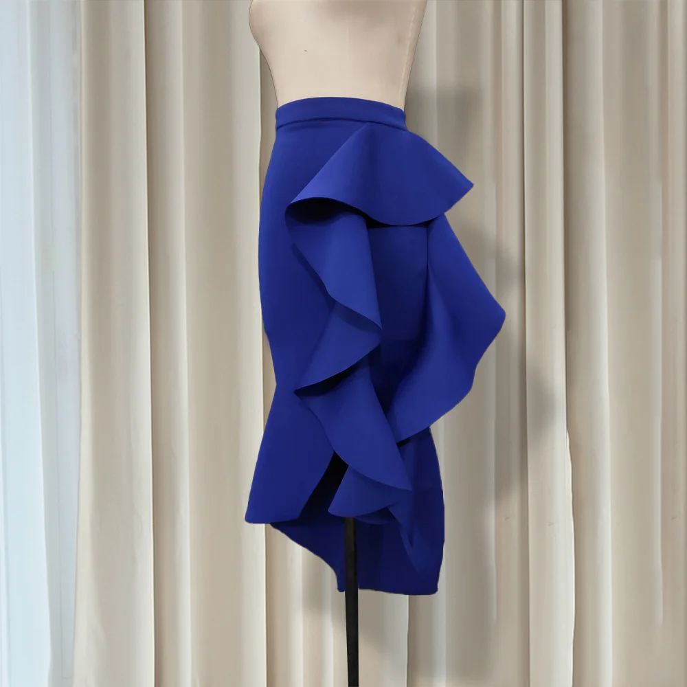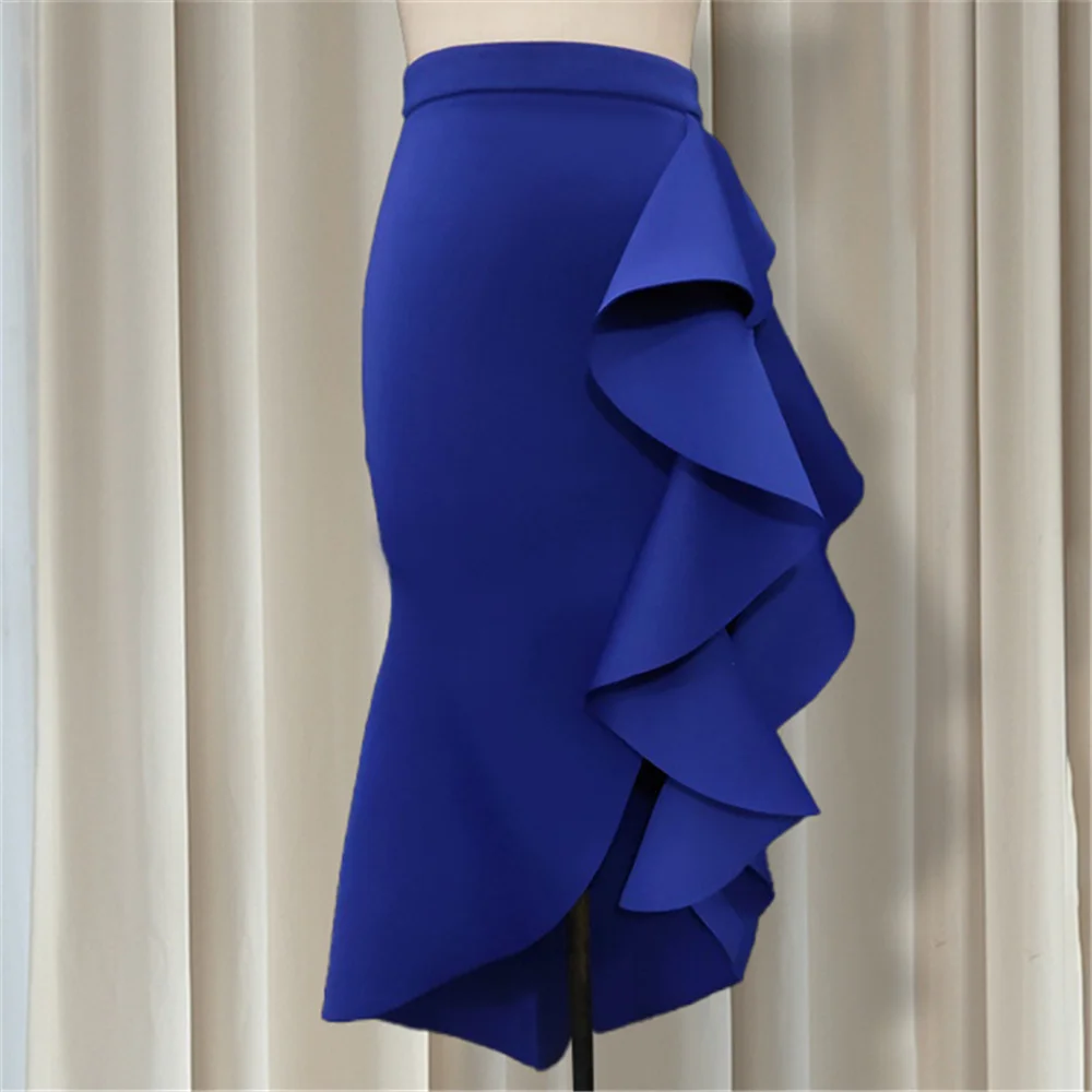 Ruffles Irregular Skirt Women 2020 African Fashion Designer Plus Size Blue Party Skirts S-2XL Office Ladies Causal Work Wear