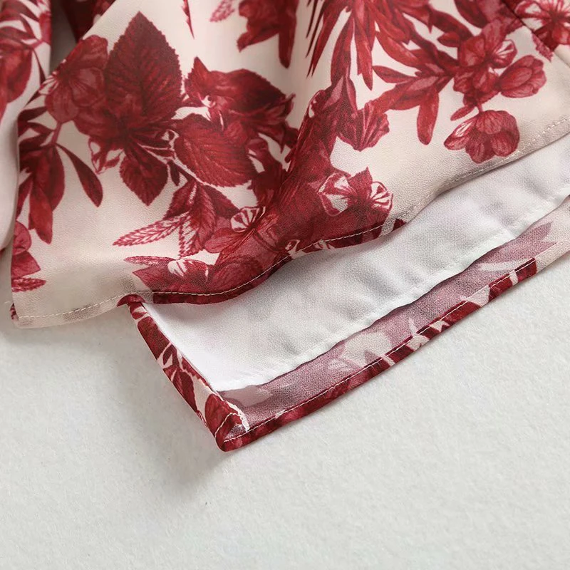 za 2020 new fashion women blouse stand collar floral print long sleeve chiffon shirts femme elegant korean red femininas tops