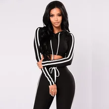 It's better for you to have this Echoine Striped Crop Hoodies Top and Pants Women Tracksuit two piece set Sports Suit Sweatshirt Jogging Femme matching sets.