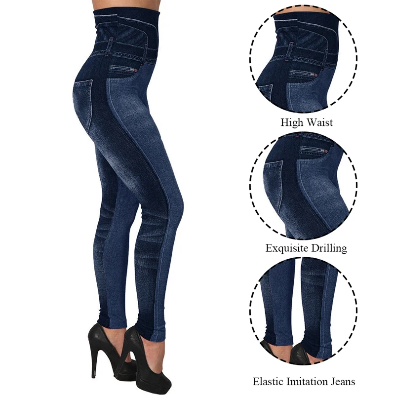 Sexy Faux Denim Jeans Leggings Women High Waist Sport Leggings Slim Female Workout Elastic Pants Plus Size Casual Pencil Pants