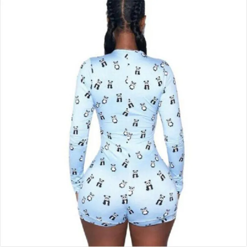 Ladies' Printed Playsuit New Fashion Sexy V-neck Long Sleeves Slim Casual Bodysuit Female Leotard Costume Women Bodycon Rompers