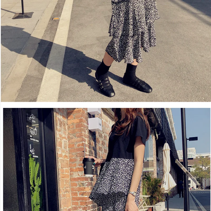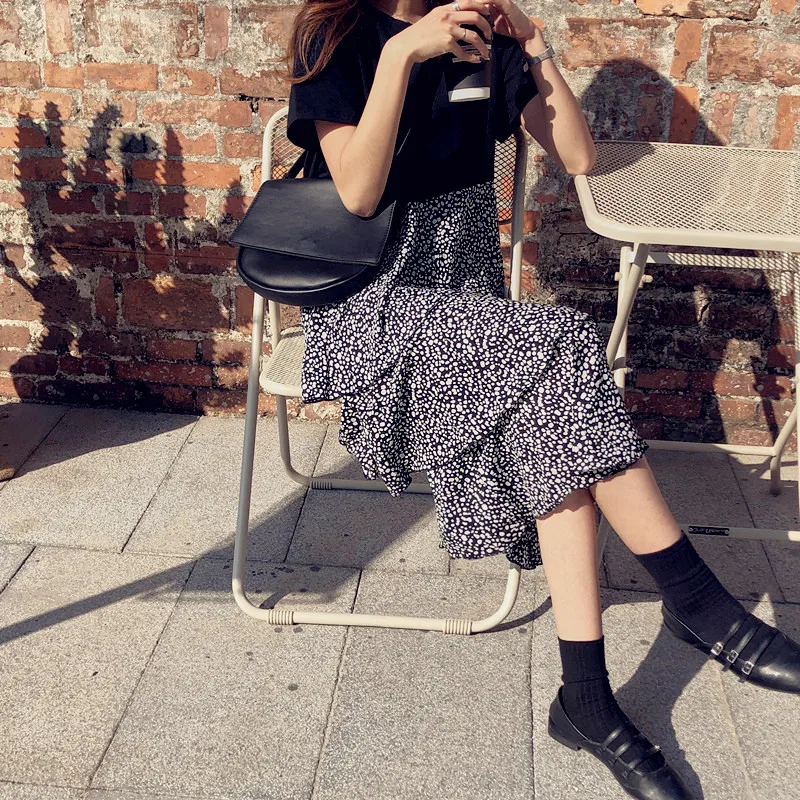 M-4XL Plus Korean Size Short Sleeve Chiffon Fake two Patchwork Dot Natural Dress Summer 2020 O-Neck Fashion Dresses Vestidos