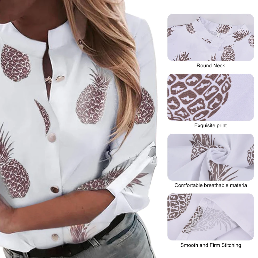 It's better for you to have this Oeak Autumn Print Shirts Women Casual Pineapple Standing Collar Button Down Long Sleeve Fashion Ladies Blouses Tops 2019.