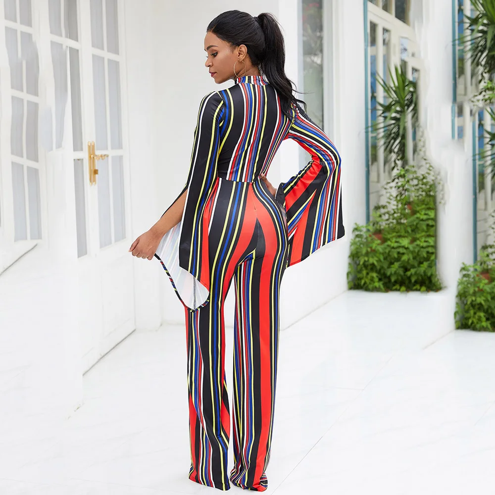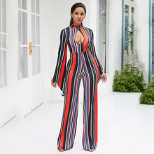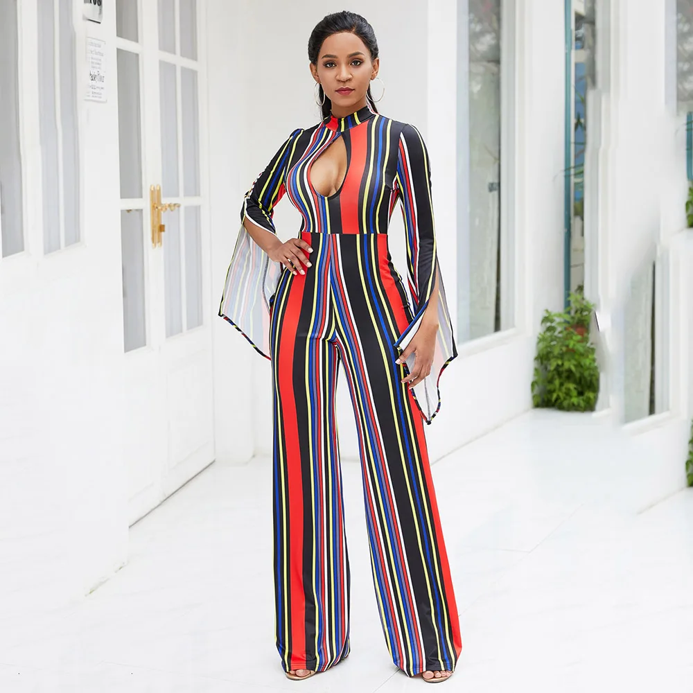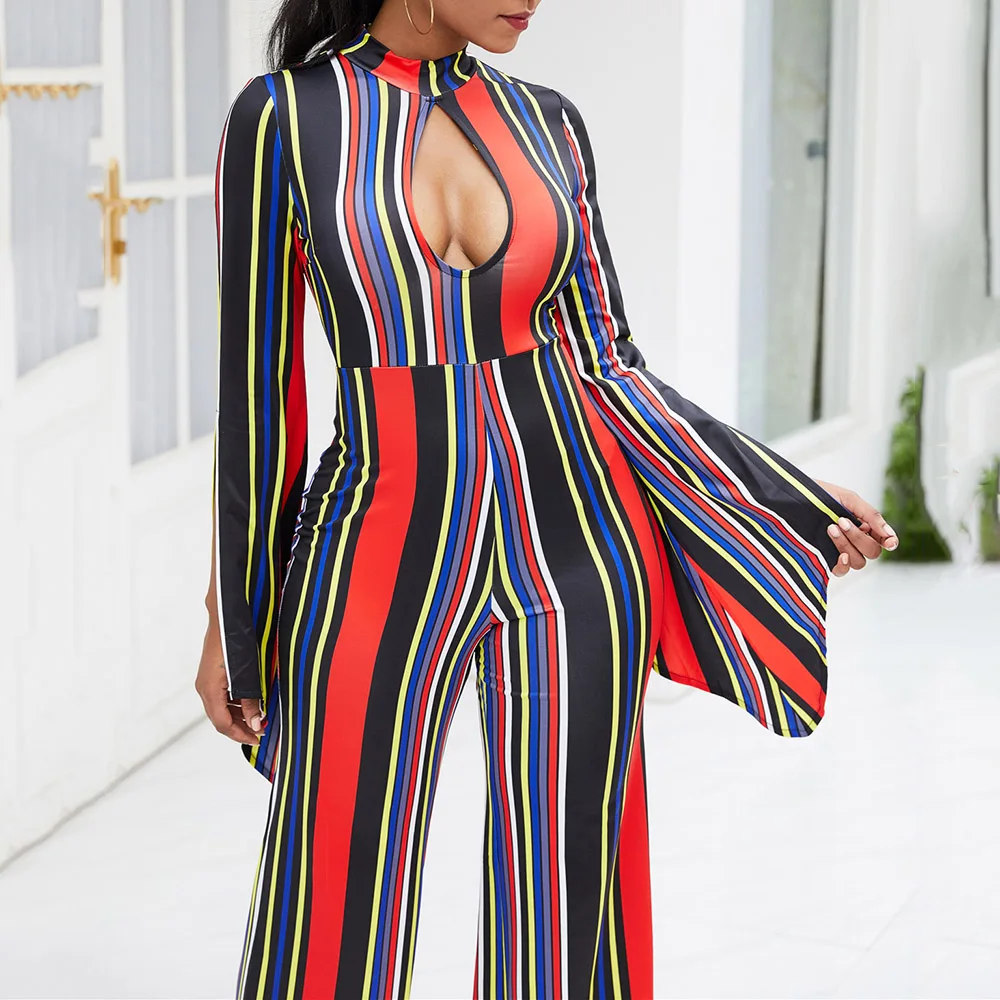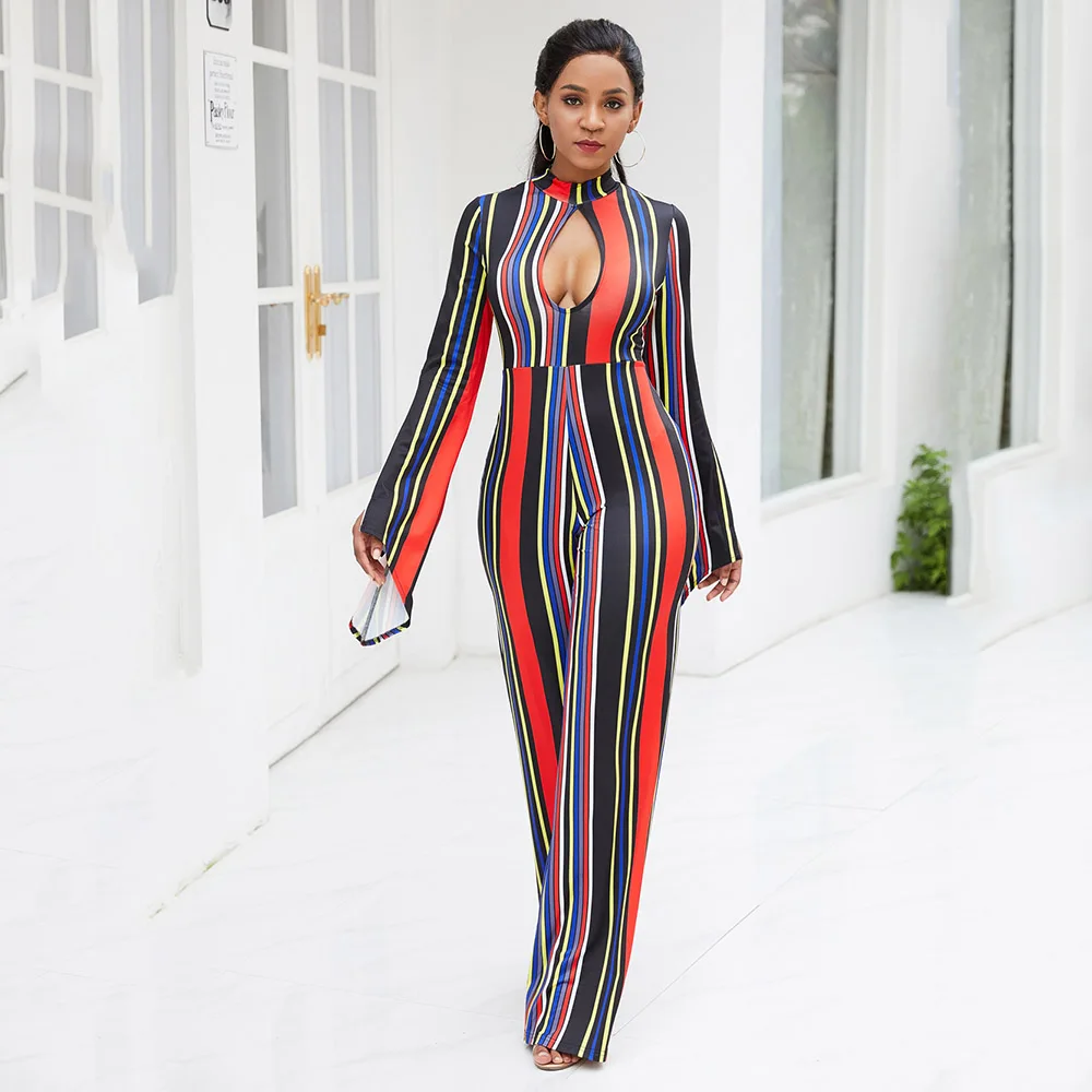 It's better for you to have this Office Women Jumpsuit Long Sleeve Elegant Stripe Print Sexy Hollow Rompers Ladies Overalls Spring 2020 Wide Legs Pants Jumpsuits.