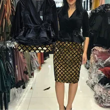 It's better for you to have this Vintage Two Piece Set Elegant Solid Velvet Tops and Sequins Plaid Skirt Women Sets Office Ladies Party Dinner Suits Plus Size.