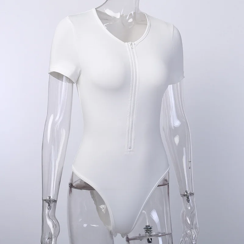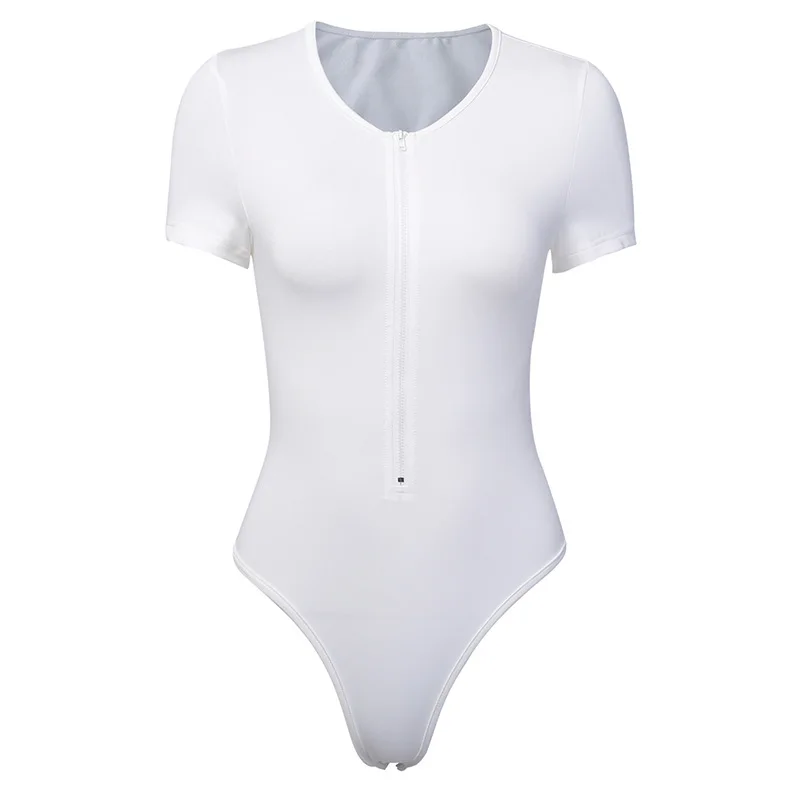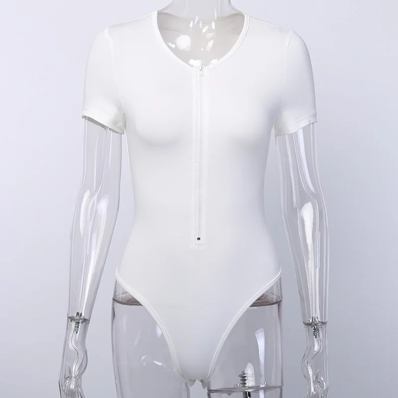 It's better for you to have this Zipper Short-sleeved Bodysuits Women's Solid Color Sexy Deep V Neck Rompers FYFLY57.