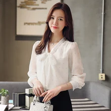 Autumn Korean Fashion Chiffon Women Shirts Bow Long Sleeve Pink Women Blouses Plus Size XXL Womens Tops and Blouses Ladies Tops