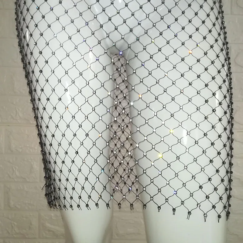 Sexy Club Skirt glitter 2019 luxury diamond mesh Party Skirts Women Shine Fishnets Hollow out See Through Summer Beach Skirt