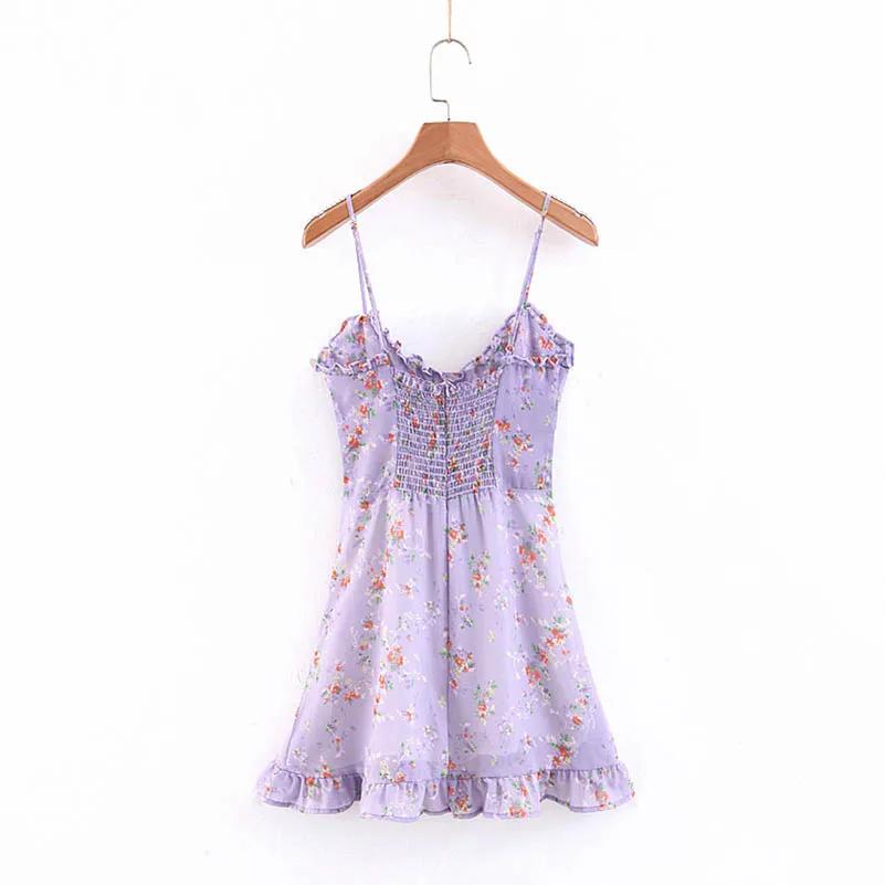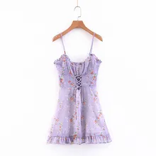 NiceMix 2019 New Summer Floral Spaghetti Strap Chiffon Dress Sleeveless Lace Up Hollow Out A-line Mini Strap Dress Party Floral