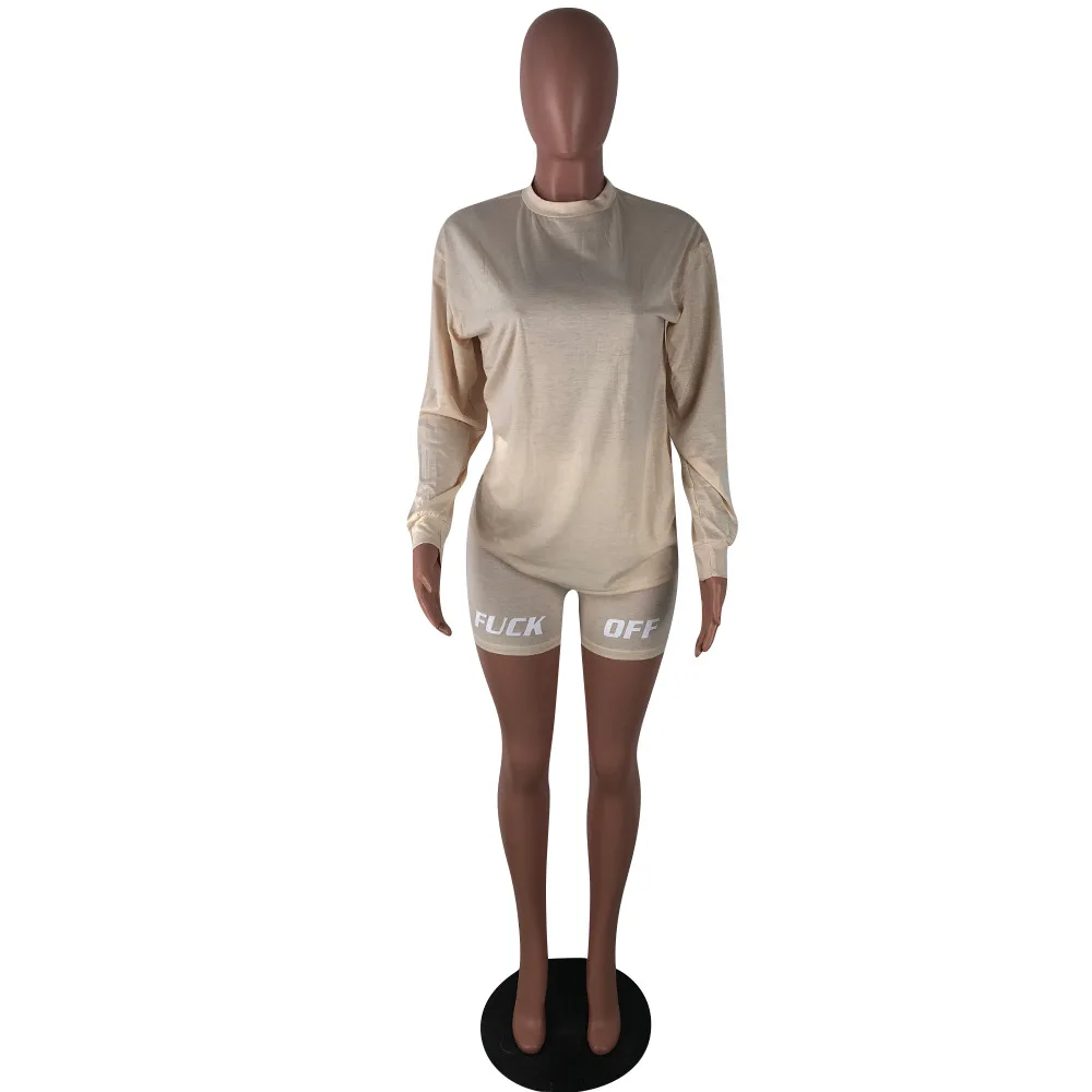 New Letter Print Two Piece Outfits Set Women Tracksuit 2020 Summer Long Sleeve T Shirt Sexy Tops ?Biker Shorts Jogger suits sets